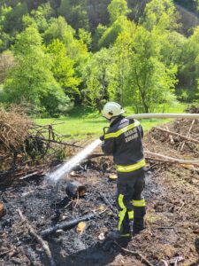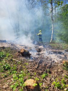 Nad cesto Tolmin – Kobarid je zagorelo v naravnem okolju. Požar na cca. 400m2 smo pogasili ter območje obilno zalili z vodo.
