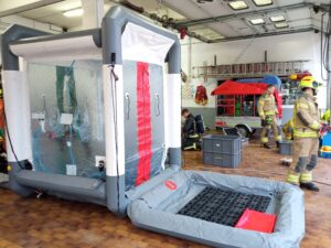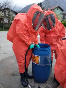 V soboto, 23. marca smo izvedli redno usposabljanje s področja razlitja nevarnih snovi ter uporabe zaščitnih sredstev ob ukrepu dekontaminacije.