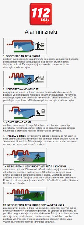 Alarmni znaki https://www.gov.si/teme/opazovanje-obvescanje-in-alarmiranje/ https://gasilec.net/opozorila-za-nevarnost/